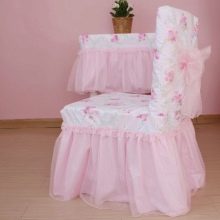 - Aber da sind schlau, feierliche Modelle, die ein ungewöhnliches dekoratives Design haben. Oft werden sie gekauft, um die Möbel bei verschiedenen Feiertagen und Feiern zu dekorieren. Sie schmücken die Sitze bei Hochzeiten oder Jubiläen.