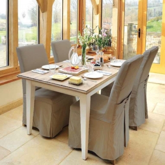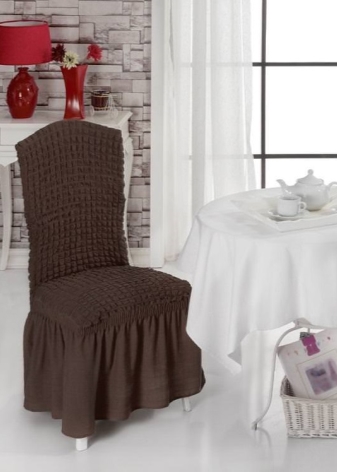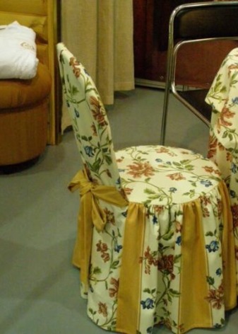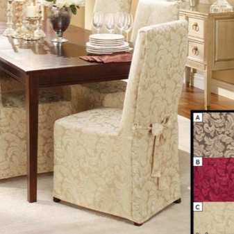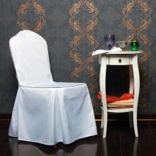 - Abdeckungen - Umhänge. Sie sind leichte Modelle, die auf einem Stuhl platziert sind. Die Abdeckung bedeckt sie nicht vollständig, sondern nur zu zwei Dritteln.