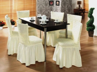 Sehr oft werden die Überzüge auf den Stühlen für die Küche bekommen. Dies liegt daran, dass dort die Möbel oft mit Lebensmitteln verschmutzt sind, und ihre Polsterung mit verschiedenen Gerüchen durchtränkt ist. Sehr oft wird es für Möbel mit weichen Elementen wie Rücken, Seiten und Sitz gekauft. Abnehmbare Abdeckungen auf einem Küchenstuhl mit hoher Rückenlehne sind sehr beliebt. Sie schützen das gesamte Produkt zuverlässig vom Rücken bis zu den Beinen.