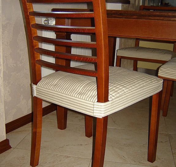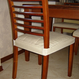 - Auf weichen Stühlen ist es besser, dünne Modelle von Bezügen ohne zu viel Füllung zu kaufen, sonst können Sie heiß sein, wenn Sie auf diesem Stuhl für eine lange Zeit sitzen.
