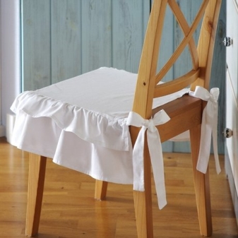 - Fest sitzen. Solche Abdeckungen passen sich sanft an alle Elemente des Stuhls an und halten ihn fest. Meistens sind sie mit Schnüren befestigt und bedecken den größten Teil dieses Möbelstücks.