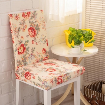 Die Farbe des Deckels wird normalerweise versucht, nicht sehr zu markieren. Darüber hinaus muss der Stoff für seine Herstellung ein buntes Muster haben, so dass der Schmutz auf dem Bezug nicht sichtbar ist, weil in erster Linie ein solches Produkt erworben wird, um den Schmutz auf dem Stuhl zu entfernen und ihn zu schützen. Dies gilt vor allem für Modelle für die Küche.