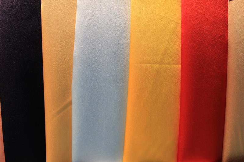 - Krepp Satin. Dies ist ein sehr hochwertiges und zuverlässiges Material. Unterscheidet sich in seiner Elastizität und hohen Dichte. Es ist perfekt für die Schaffung von dekorativen Elementen, wie z. B. Baugruppen, Falten. Das Material wirkt sehr elegant und ansprechend. Draußen hat es einen seidenglänzenden Glanz, von innen eine matte Oberfläche. Dies ist ein sehr haltbarer Stoff, der nicht knittert und daher gut auf Stühlen aussieht. Außerdem ist es einfach, sich um sie zu kümmern.