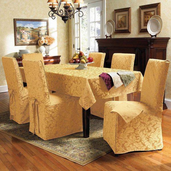 - Kostenlos Das sind Produkte, die einfach auf den Tisch kommen. Sie sind sehr komplex in der Ausführung. Dies ist aufgrund der Tatsache, dass eine solche Abdeckung wichtig ist, um richtig auf dem Stuhl zu begradigen und nicht zu ziehen, zappeln auf dem Stuhl. Sie sind unter bestimmten Modellen von Stühlen ausgewählt und sehen sehr einfach und elegant aus.