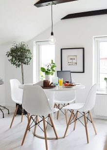 Holzstühle mit Rückenlehne können in fast jedem Raum des Hauses oder der Wohnung verwendet werden. Zusammen mit dem Esstisch bilden sie eine Essgruppe, bei der sich die Mahlzeiten in der Regel verzögern - die Stühle sollen nicht nur schön, sondern auch bequem sein. In der Küche können sie neben einem kleinen Tisch stehen, und ein Barmodell benötigt die entsprechende Höhe.