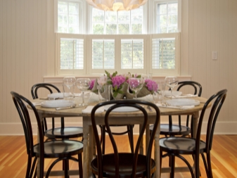 - Walnuss, Eiche und Birke sind weniger behandelbar, aber haltbarer - solche Möbel halten mehr als ein Dutzend Jahre. Die Stühle bestehen aus Erle, Esche, Ahorn, Akazie, Wenge und sogar Mahagoni.