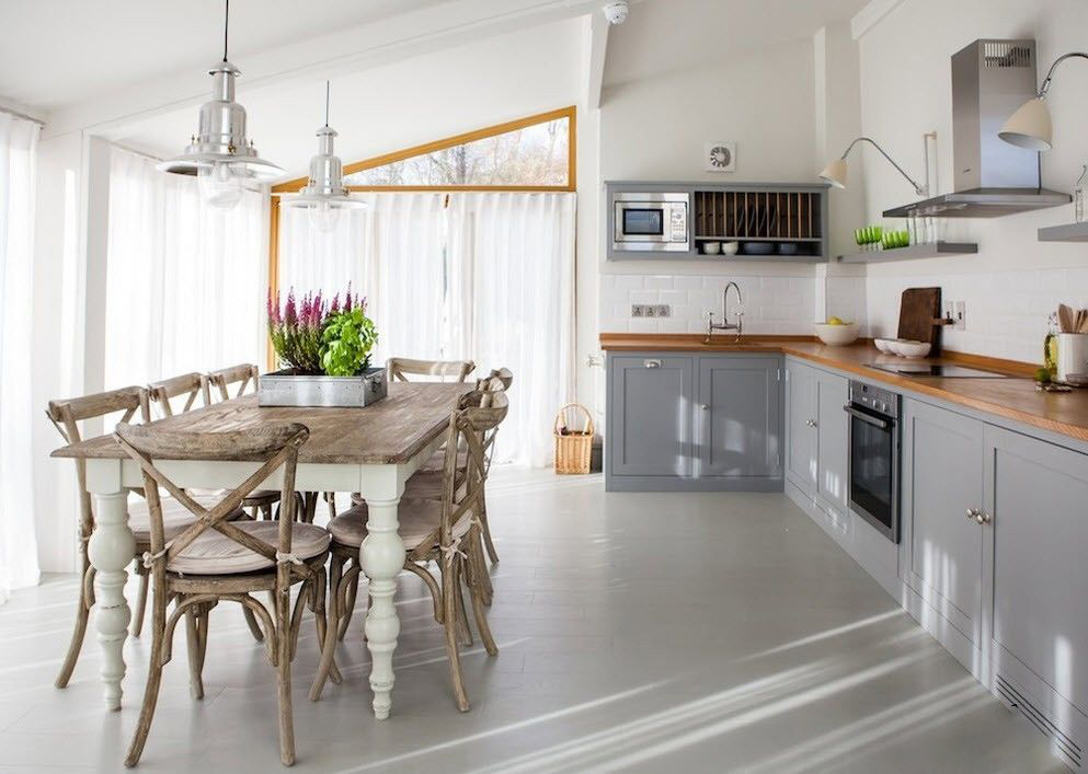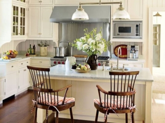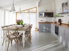 - Für einen legeren Stil Country-Musik Sie können sicher grobe und unbemalte Stühle kaufen, die ein ausgeprägtes natürliches Muster haben. Es ist überhaupt nicht notwendig, die Varianten der vollkommen korrekten Formen zu wählen. Im rustikalen Ensemble werden gut und schlecht verarbeitete Stühle aussehen.