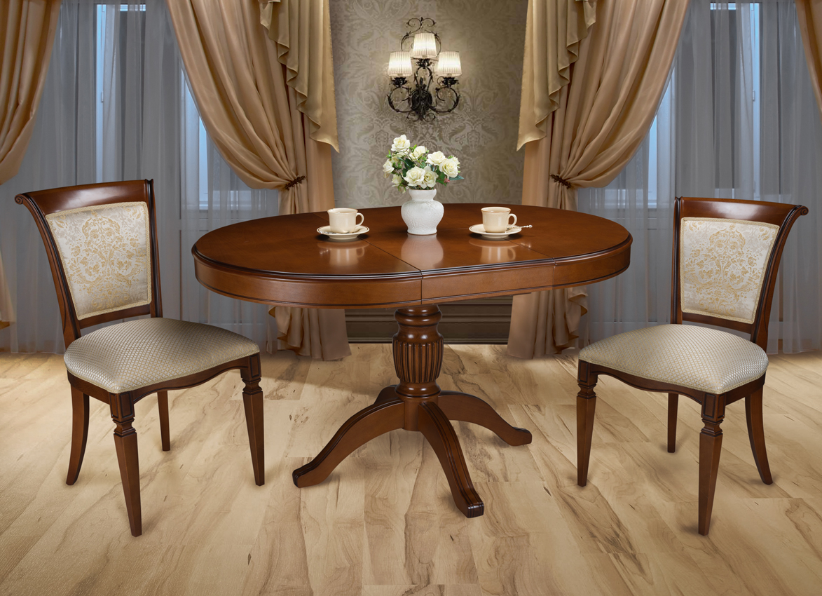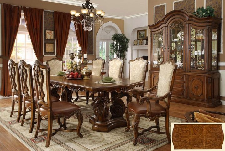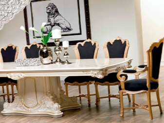 - Klassische Ensembles sollte mit eleganten Modellen, ohne grobe dekorative Elemente verziert werden. Für solche Innenräume passen prägnante geschwungene Modelle, ergänzt durch unauffällig geschnitzte Elemente.