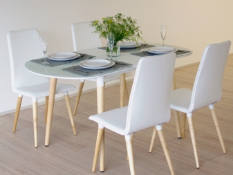 - Für einen eleganten Stil modern geeignet für mittelgroße und nicht voluminöse Stühle, die nicht nur regelmäßige, sondern auch leicht gebogene Formen haben. Sie sollten prägnant, aber elegant sein. Kaufen Sie nicht für einen modernen Innenraum zu phantasievolle Optionen.