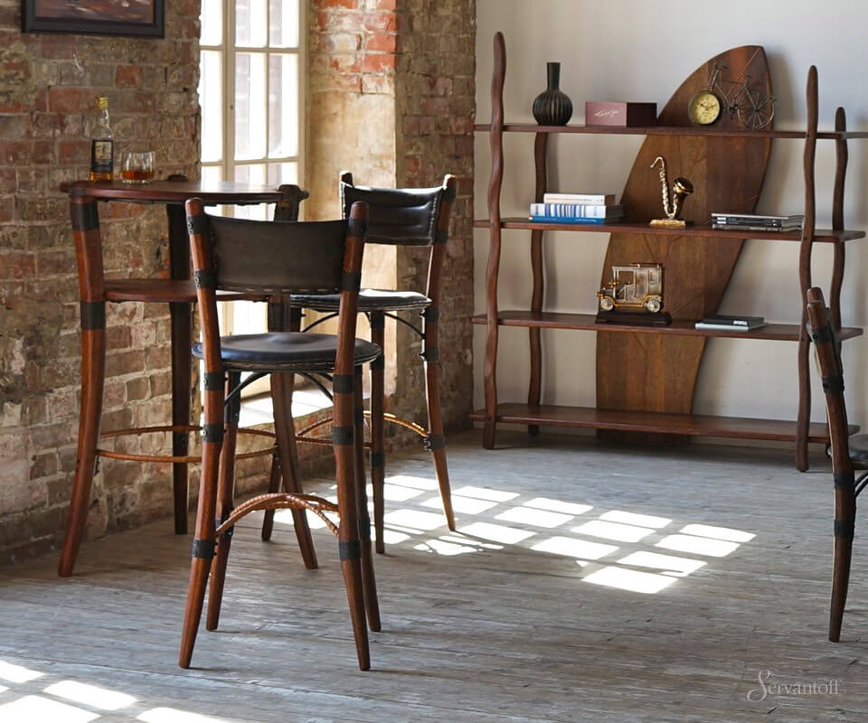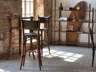 Auch hochwertige Massivholzstühle können in ihrem Grundzweck variieren. Heute können Sie auf dem Möbelmarkt solche Produkte finden, die nicht nur im Wohnzimmer, sondern auch im Büro oder im Bad aufgestellt werden.Solche Möbel sind sehr oft in der Nähe der Bar Theken, Musikinstrumente (zum Beispiel in der Nähe des Klaviers oder des Klaviers) installiert.