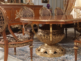 Geschnitzte Exemplare haben einen besonderen Reiz. Sie sehen wirklich luxuriös und teuer aus. Sie können nicht nur in klassischen, sondern auch in einem aufwendigeren Ensemble (Barock, Rokoko oder Empire) aufgeführt werden. Für den zweiten Fall passen geschnitzte Modelle mit Vergoldung oder Versilberung.