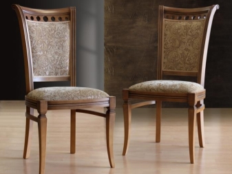 Elegantes und teures Aussehen haben Holzstühle, in denen es gebogene Beine und Armlehnen gibt. Solche schönen Möbel sehen organisch in klassischen oder ausgefallenen Interieurs aus, denn mit all ihrem Aussehen zeigt sie den ausgezeichneten Geschmack der Hauseigentümer und die Vorzeigbarkeit der Situation als Ganzes.