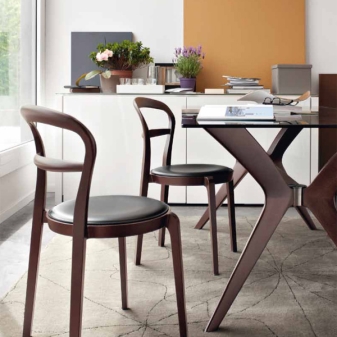 Solche Produkte haben jedoch einige Nachteile.Der Hauptnachteil, der von modernen Verbrauchern bemerkt wird, wird berücksichtigt hohe Kosten für Holzmöbel. Wenn Sie sich entscheiden, Stühle von wertvoller Rasse zu kaufen, dann müssen Sie eine riesige Menge im Laden lassen. Zu den Nachteilen vieler Käufer gehört auch, dass die Stühle aus Massivholz regelmäßig und gewissenhaft gepflegt werden müssen. Andernfalls verlieren die Möbel ihr attraktives Aussehen, trocknen aus und können sogar Risse bekommen.