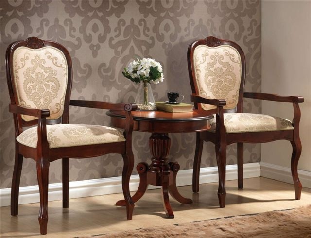 - Stühle. Diese Möbel haben ein klassisches Design und bestehen aus einem Sitz, Beinen, Rückenlehne und Armlehnen.