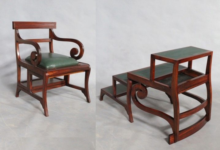 Transformierende verstellbare Stühle sind heute sehr beliebt. Verschiedene Modelle haben unterschiedliche Funktionalitäten. Zum Beispiel gibt es in einigen Fällen zusätzlich zu dem Hauptsitz einen ausziehbaren kleinen Tisch oder ein zusätzliches Regal zum Aufbewahren verschiedener Küchengeräte (Handtücher, Servietten und andere solche Dinge). Es gibt auch Treppen.