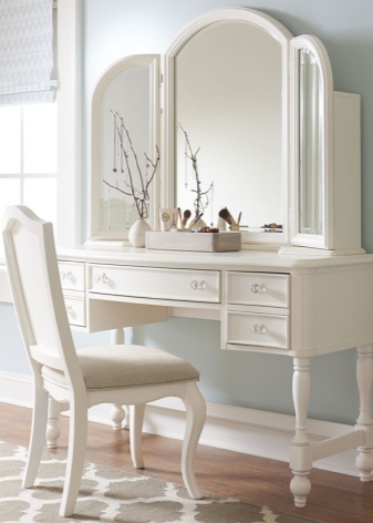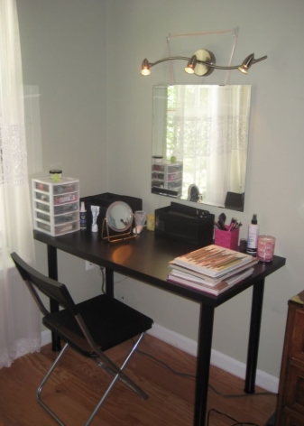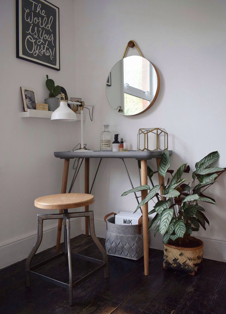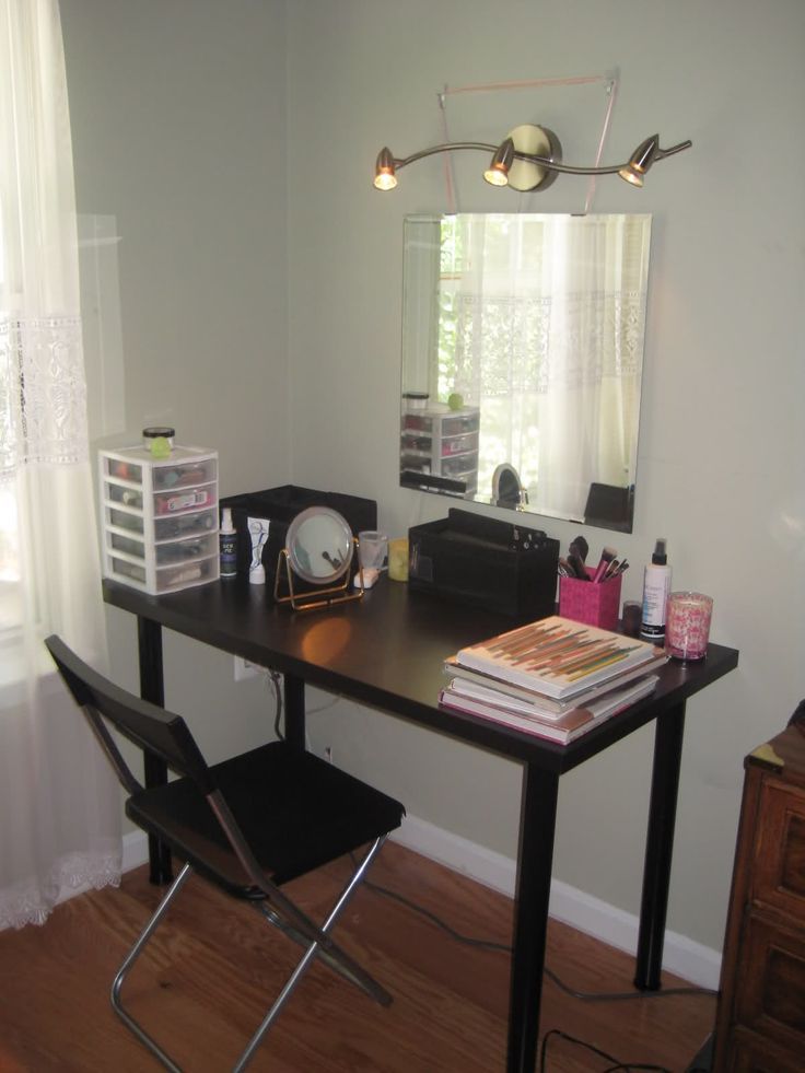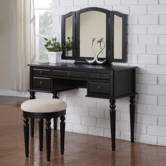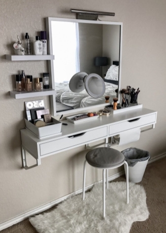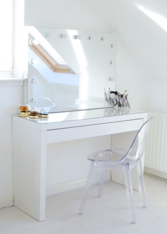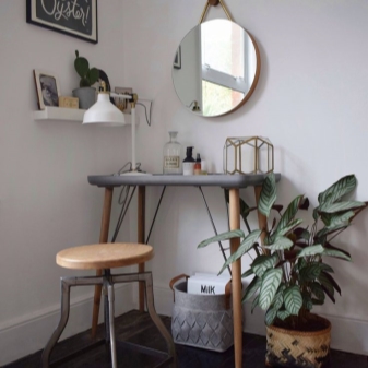 - Abmessungen. Erstens sollte es bequem sein, auf dem Tisch und vor dem Spiegel zu sitzen. Wenn der Sitz von mehreren Personen benutzt wird, ist es sinnvoll, ein Modell mit einstellbarer Höhe zu wählen. Zweitens, wenn der Raum klein ist, sollte er den Raum nicht durcheinander bringen. Ideal, wenn der Stuhl nach dem Gebrauch unter den Tisch geschoben werden kann.