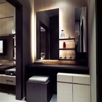 Anstelle von Stühlen als Sitzmöbel für Frisiertische können Sie einen Boudoirsessel, Hocker, Ottomane oder Hocker benutzen, die die gleichen Funktionen tragen. Wählen Sie diese Möbel nach den Regeln, ähnlich wie bei den Stühlen.