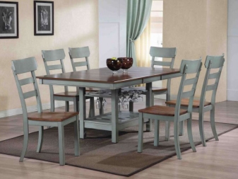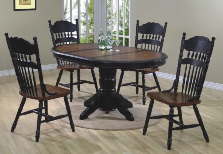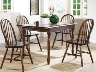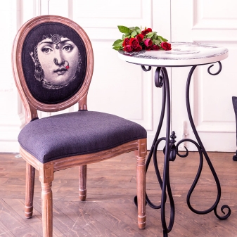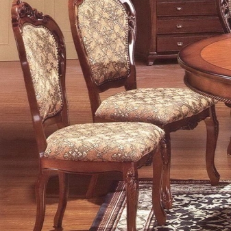 Das Design der Stühle unterscheidet sich nicht nur durch das Design selbst, sondern auch durch das Material der Polsterung und deren Muster, und in einigen Varianten kann es völlig fehlen.