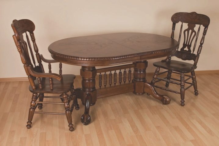 Dieses Rohmaterial ermöglicht die Herstellung von Möbeln jeder Form und Konfiguration, aber in der Regel haben die Tische eine traditionelle runde oder rechteckige Form. Die Tischplatte kann sowohl ein oder zwei massive Beine tragen, als auch die üblichen vier. In der Regel haben Träger dünnere Gewinde. Der Größenbereich ist sehr groß, so dass die Größe für den vorgesehenen Bereich individuell gewählt wird.