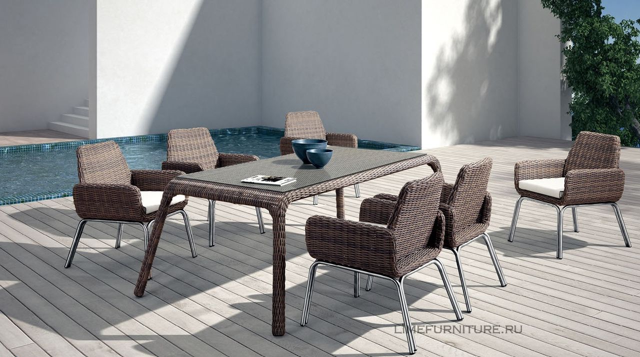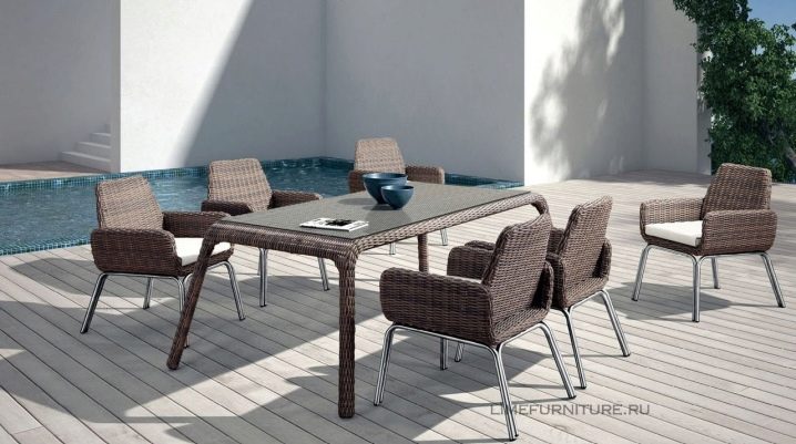 Künstliches Rattan bezieht sich auf billige Materialien, zeichnet sich durch Langlebigkeit aus und ist angenehm in der Berührung. Er kann verschiedenen äußeren Bedingungen standhalten. Künstliche Rattanstühle haben keine Angst vor Sonnenlicht und Kontakt mit Wasser.