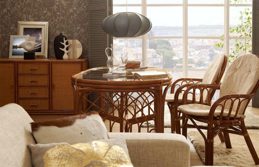 - Die Möbel können ausschließlich aus Rattan hergestellt werden, dank des Webens von Palmenstängeln. Es wird auch rahmenlos genannt.