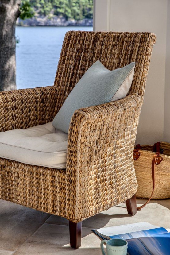 Korbmöbel werden dazu beitragen, die Umgebung eines Landhauses zu schmücken. Die Eleganz und der Stil unterscheiden Rattanstühle von Modellen aus anderen Materialien.