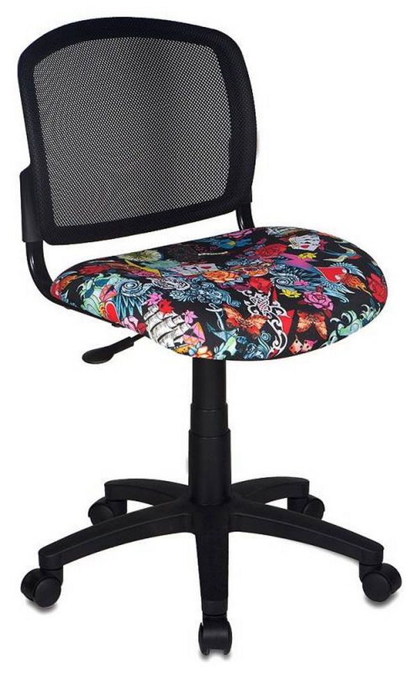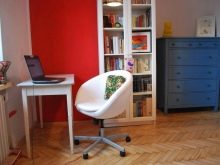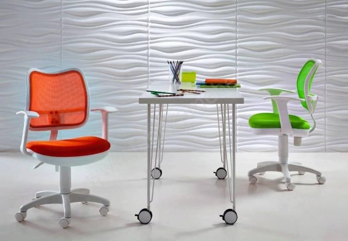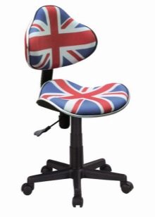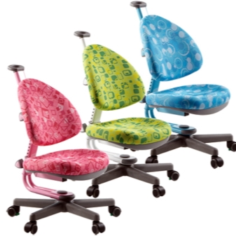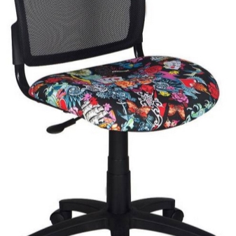 Abhängig davon, ob der Stuhl im Büro oder zu Hause ist, kann seine Oberfläche monochromatisch oder farbig sein. Für das Büro oder Büro werden konservativere und neutrale Farben (schwarz, braun, beige) ausgewählt. Zu Hause, besonders im Kinderzimmer, können Sie mehr helle Farben aufheben, die dem Innenstil (gelb, orange, lila) entsprechen. Kindermodelle mit Bildern von Lieblingsfiguren werden aufmuntern.