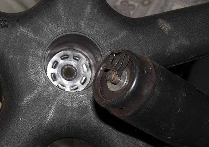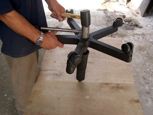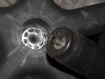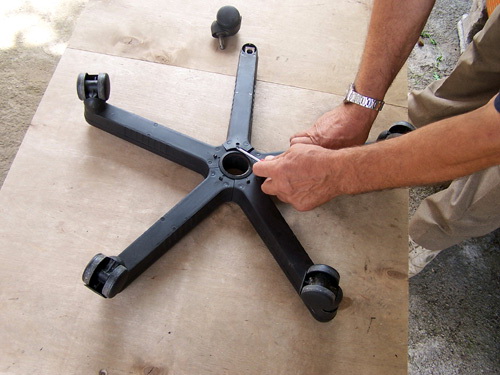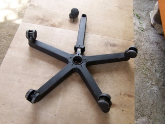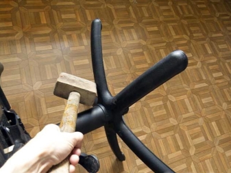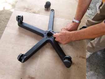 - Es ist notwendig, die Rollen zu ziehen (oder in einigen Modellen mit einem Schraubenzieher abzuschrauben) und sie vom Kreuz zu trennen.