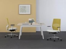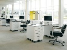 Bürostühle werden oft in Form von Modellen auf Rädern hergestellt. Sie sind normalerweise fest und eher weich, da sie für längeres Sitzen auf ihnen bestimmt sind. Solche Halbstuhlmodelle sind in fast jedem Büro zu sehen.