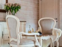 - Nach dem Ort der Installation. Nach diesem Kriterium sind die Halbsessel in zwei Gruppen unterteilt: für die Installation im Haus oder im Büro. Stühle, die für den Heimgebrauch bestimmt sind, haben normalerweise weichere Linien und glatte Holzbeine. Ihre Farben sind normalerweise warm und weich, einige Modelle können eine ungewöhnliche Dekoration oder einen Druck haben. Stühle mit Armlehnen dieser Gruppe können in jedem Raum installiert werden - im Schlafzimmer, in der Küche oder sogar im Wohnzimmer.