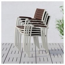 - Die kompakte Größe und das geringe Gewicht bieten eine hohe Mobilität solcher Möbel. Gewöhnlich haben Stühle mit Armlehnen kleinere Abmessungen als gewöhnliche Stühle, und ihr Gewicht ist viel geringer.