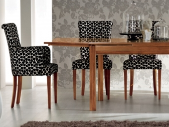 - Kombinierte Stühle mit Armlehnen. In diesem Fall kann eine weiche Polsterung auf der Rückseite und den Sitzen sein, und die Armlehnen selbst werden hart sein.