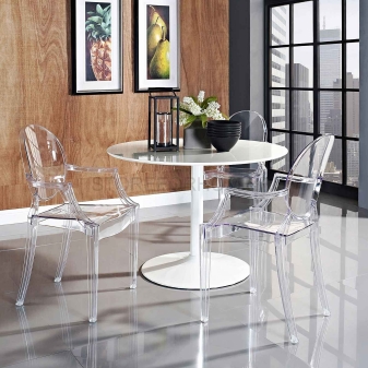 - Wenn sie in der Nähe des Esstisches installiert werden, nehmen sie mehr Platz ein als normale Stühle.