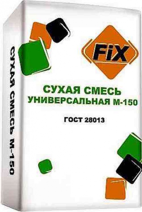 - M-150 Fix. Universalmischung, deren Zusammensetzung - trockener Sand und Portlandzement. Ein Sack dieses Materials kostet 138 Rubel und wiegt 25 kg.