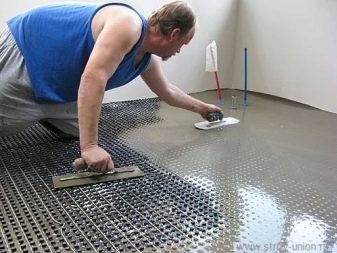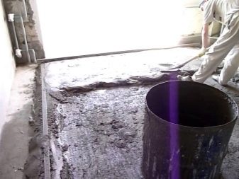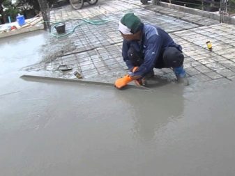 Stellen Sie sicher, dass die Ebene und die Installation der Beacons, die gefüllt werden, übereinstimmen. Wenn der Boden mit Sandbeton gefüllt wird, wird er einfach über die Oberfläche gegossen, wobei die Regel ausgeglichen wird. Zum Zeitpunkt der Erstarrung (während der ersten 3 Tage) sollte die Verdampfung von Feuchtigkeit aus der Lösung verhindert werden, wozu die abgefüllten Basen mit einer Plane bedeckt sind.