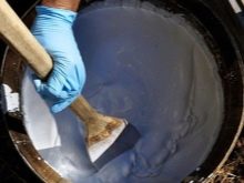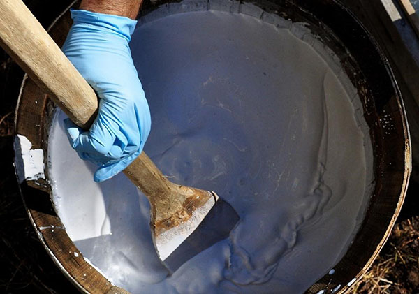 Kalk wird in den vorbereiteten Behälter gegossen und Wasser wird hinzugefügt. Damit der Abschreckvorgang die gesamte Masse beeinflusst, muss die Lösung insbesondere in den ersten 30 Minuten gerührt werden. Als Gerät können Sie einen beliebigen Stick zur Hand nehmen, mit dem Sie später auch die Bereitschaft der Komposition überprüfen können. Eine helle weiße Markierung auf der Oberfläche des Stabes, die beim Absenken in die Lösung entsteht, bestätigt die Einsatzbereitschaft.