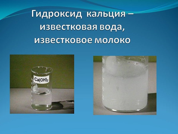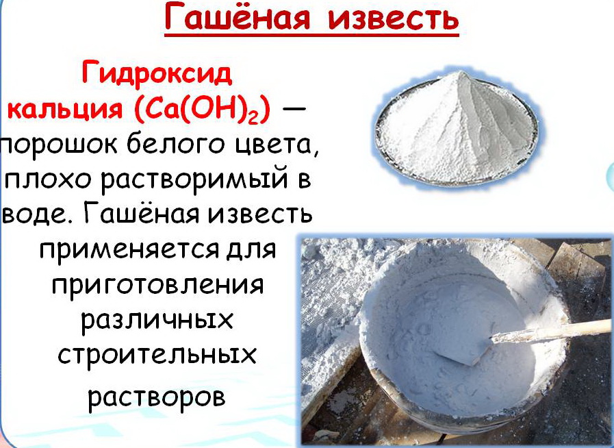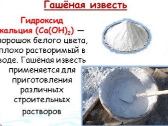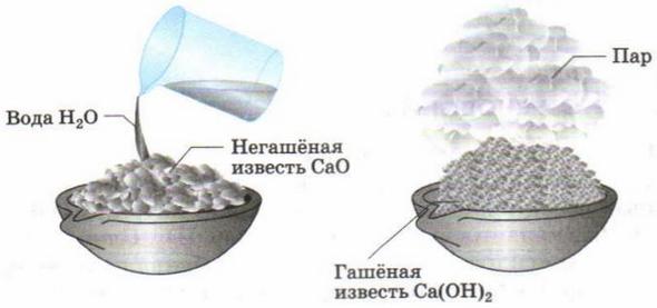 Löschkalk ist ein modifiziertes Ätzkalkprodukt, das durch Zugabe von Wasser zu der ursprünglichen Zusammensetzung erhalten wird. Als Folge einer chemischen Reaktion, die als CaO + H & sub2; O → Ca (OH) & sub2; auftritt, wird eine signifikante Menge an thermischer Energie in den umgebenden Raum freigesetzt, und Calciumoxid wird in Calciumhydroxid umgewandelt.