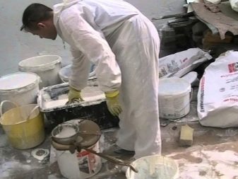 Für die Herstellung der zukünftig zum Verkleiden von Decken- oder Wandflächen verwendeten Lösung ist ein Anteil von 2: 1 zu beachten - für 1 kg Trockenmasse benötigen Sie mindestens 2 Liter.Die Menge an zusätzlich zugegebenem Wasser hängt von der erforderlichen Konsistenz der Lösung ab. Um die vorbereitete Lösung für den beabsichtigten Zweck zu verwenden, bestehen Sie für mindestens zwei Tage und filtern Sie vor der direkten Anwendung.
