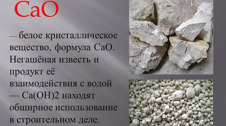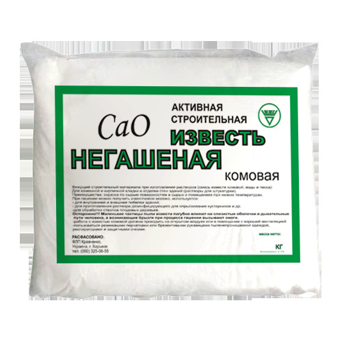 Das Material nimmt Feuchtigkeit perfekt auf, was es ermöglicht, es als zusätzliches Element bei der Herstellung von Mörteln und Betonmischungen zu verwenden, um deren Dichte und Festigkeit zu erhöhen. Die Auswahl des Materials im Hydratationsprozess einer großen Menge an thermischer Energie ermöglicht, dass die Lösungen, die Branntkalk einschließen, gleichmäßig aushärten und als Ergebnis verbesserte Indikatoren für die Festigkeit der resultierenden Oberfläche haben.