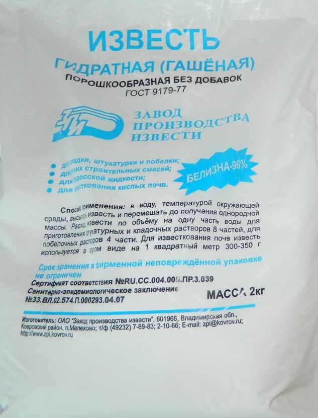 Nach den technischen Anforderungen sind Zusatzstoffe in Kalk zulässig. Diese Zusammensetzung ist in zwei Sorten unterteilt: die erste und die zweite. Reiner Kalk zeichnet sich durch drei Sorten aus: erste, zweite und dritte.
