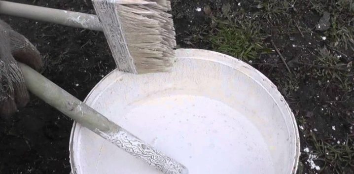 Um Baumstämme in 1 kg Kalk zu verarbeiten, geben Sie 4 Liter Wasser (4: 1) hinzu und lassen Sie die Mischung zwei Tage ziehen. Zum Besprühen von Pflanzen wird die Zusammensetzung zwei Stunden vor der Verwendung vorbereitet und Kupfersulfat wird in die Lösung gegossen.
