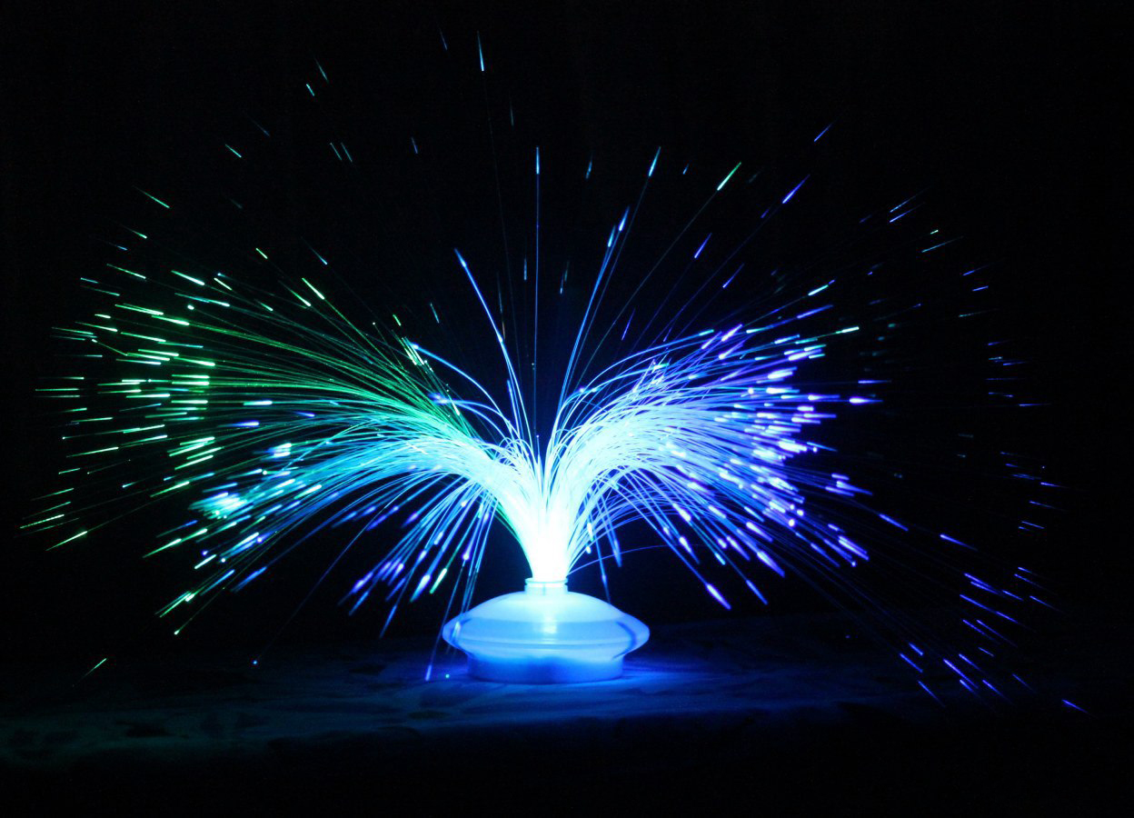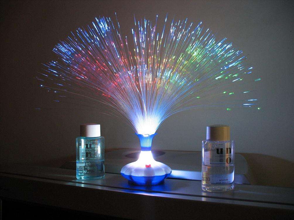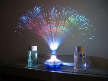 - Eine der ersten Ideen von dekorativen Lampen wird betrachtet "Flackernder Brunnen". Dünne Plastikströme des Brunnens flackern effektiv wie Sterne im Dunkeln.