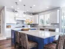 Spotlights werden hauptsächlich in Gruppen von 2 Stück verwendet.Natürlich ist dies die hellste Option, aber im Vergleich zu den üblichen Kronleuchtern ist das Licht gedämpft und diffus, und es ist auch möglich, Glühbirnen zu installieren, die die gesamte Farbpalette ergeben. Spotlights werden oft zur Zoneneinteilung und Hervorhebung eines bestimmten Raums verwendet. Zum Beispiel ist es sehr praktisch für sie, den Arbeitsbereich in der Küche zu beleuchten: und leicht zu kochen, und durch Ausschalten des Lichts ist es leicht, die Aufmerksamkeit auf den festlich gedeckten Tisch zu lenken.