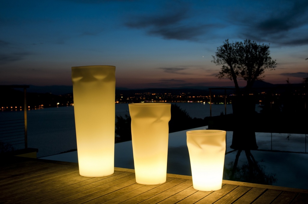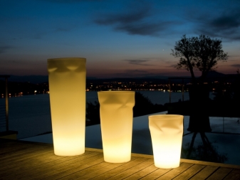 - In Discos am Pool oder im Freien finden Sie oft riesige dekorative Lampen in voller Länge aus flexiblem Kunststoff oder Papier wie chinesische Laternen. Sie sind in zylindrischer, konischer, ovaler und jeder anderen Form dargestellt.Sie sehen sehr beeindruckend und atmosphärisch aus.