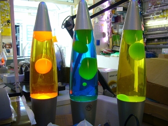 - So genannt Lavalampen - eine der beliebtesten Arten von Beleuchtung. Ein spezielles Glycerinöl wird in einen großen Kolben gegossen, und Paraffin wird ebenfalls platziert, das auf und ab "schwimmt", dann von einer Glühlampe erhitzt und dann am oberen Ende des Kolbens abgekühlt wird.Eine solche Lampe wird im Volksmund "mit Blasen" genannt.