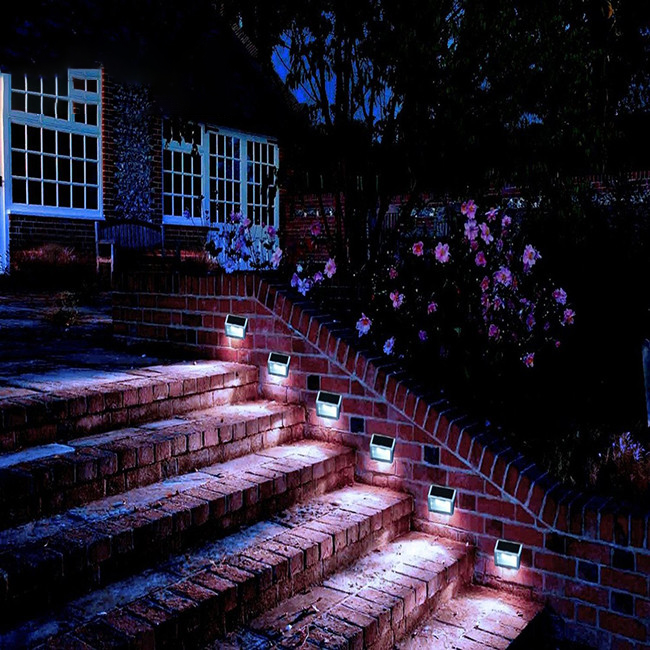 - Wandleuchten, im Gegensatz zum Boden, unprätentiös zu installieren. Sie werden einfach mit doppelseitigem Klebeband an die Wand geklebt oder an einem Nagel aufgehängt, sie geben viel Licht, wenn sie hoch genug hängen. Arbeite wie von gewöhnlichen Batterien und von Solar.