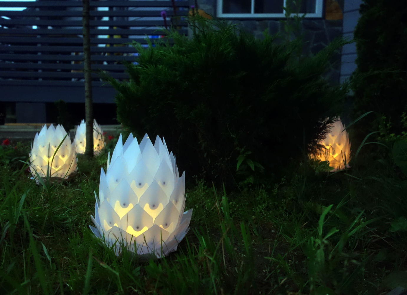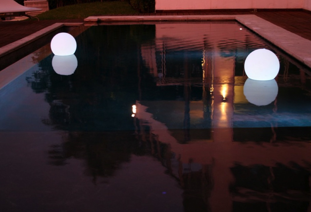 - Jedes Reservoir auf dem Gelände kann wunderschön durch schwimmende Beleuchtungseinrichtungen bezeichnet werden. Sie sind mit der Energie des Sonnenlichtes aufgeladen, sind absolut sicher und bringen die Schönheit und Romantik am Abend einfach mit. Runde Decke kann transparent sein, Farbe, in der Technik von Glasmalerei gemacht.