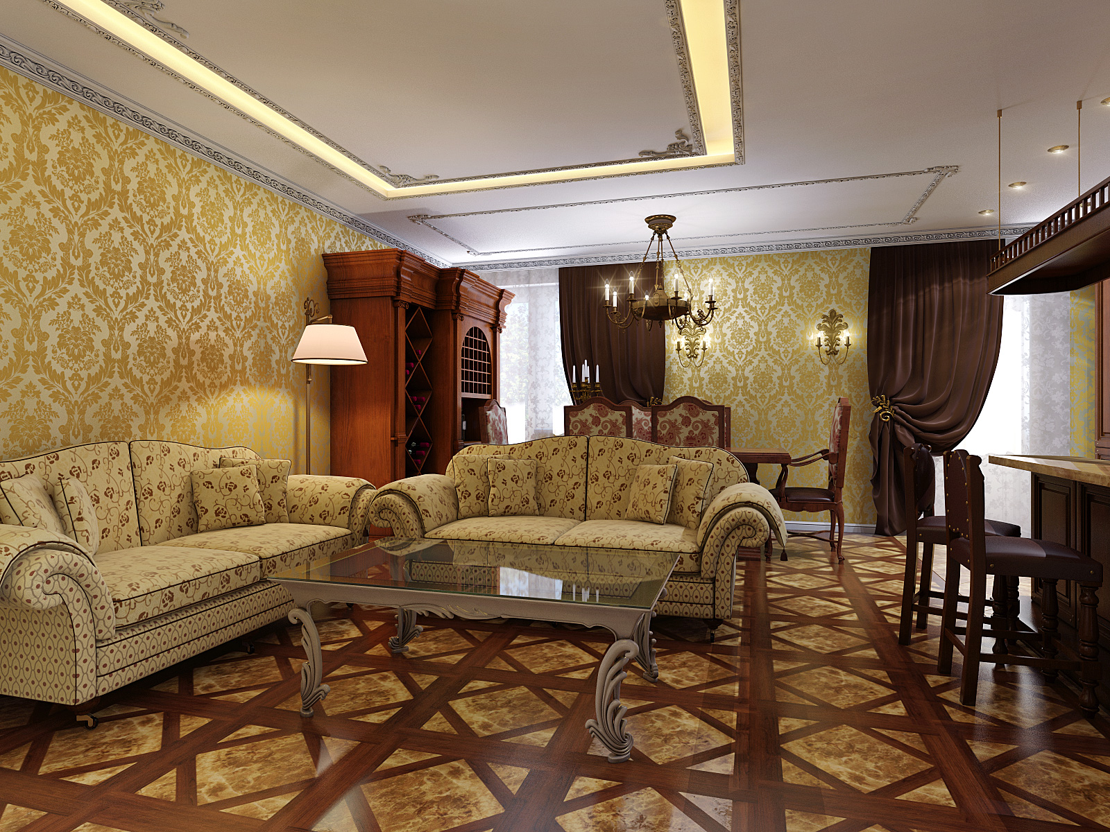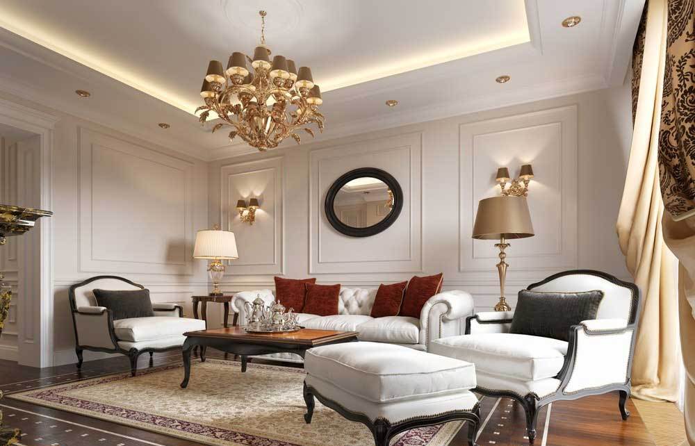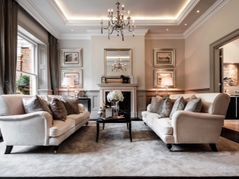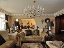Um einen Raum im klassischen Stil zu dekorieren, kann auf einen Kronleuchter - die Hauptlichtquelle in einem solchen Raum - nicht verzichtet werden.Produkte haben hier meist mehrere Stufen, sie sind mit verschiedenen Kristallanhängern verziert. Carob Kronleuchter sind auch sehr beliebt. Für die Zonenbeleuchtung mit Wandleuchten. Mit ihrer Hilfe können Sie ein Bild, eine Sofaecke, ein Klavier und vieles mehr auswählen. Solche Geräte sind auch im Schlafzimmer (über dem Bett) oder im Flur (um den Gang zu markieren), sowie auf der Treppe relevant.