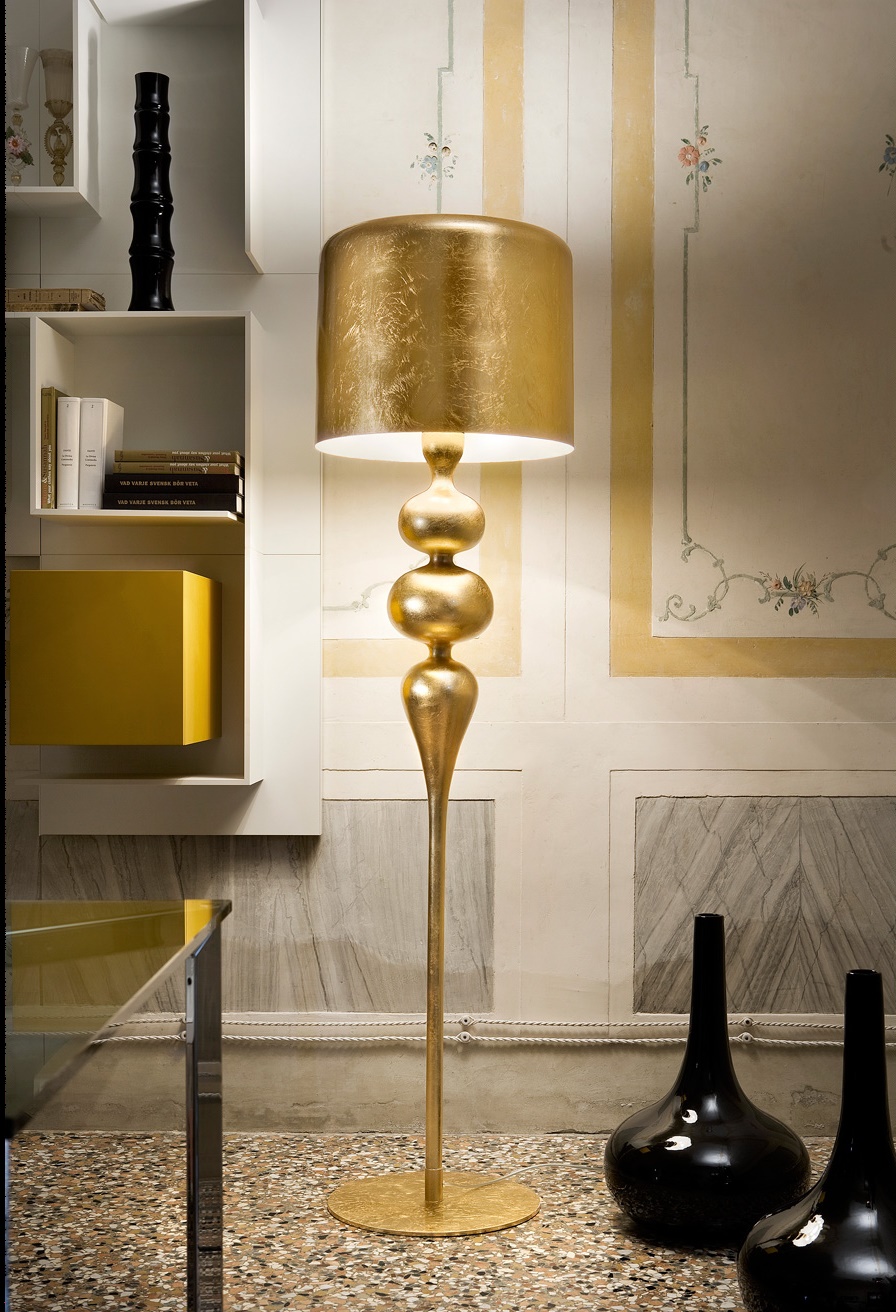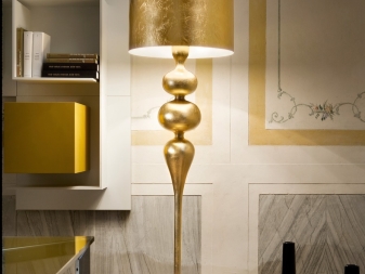 - Vergoldetes Bein dieser Modell Stehleuchte macht den Raum "reicher". Solch eine Lampe wird definitiv zu einem Akzent im Raum.
