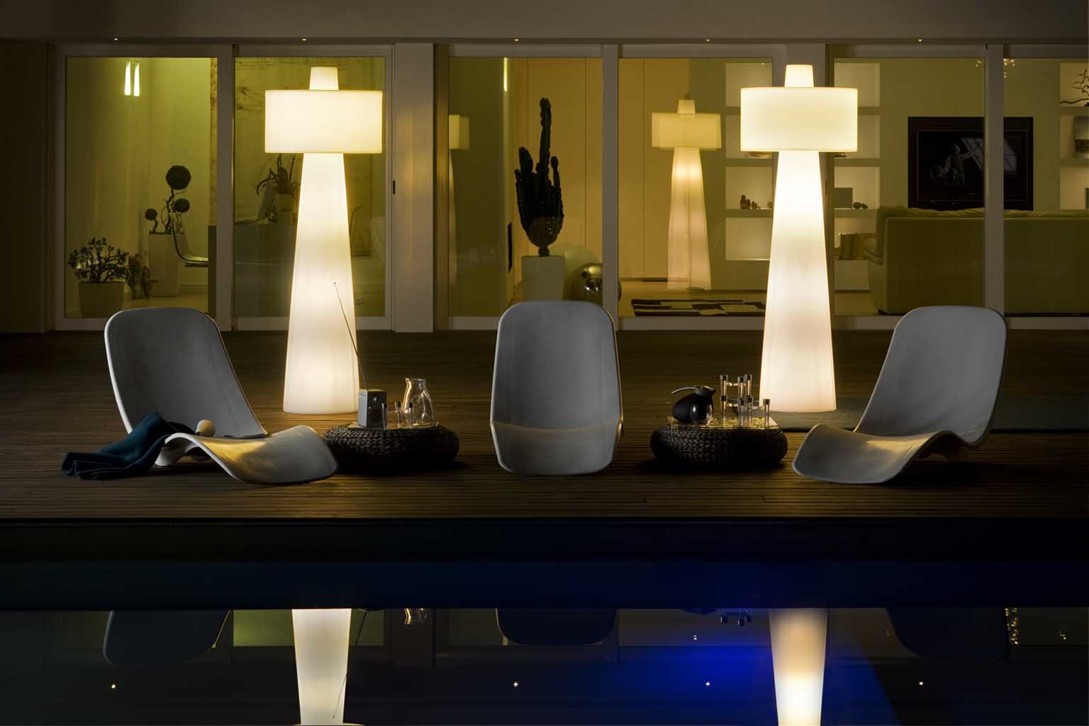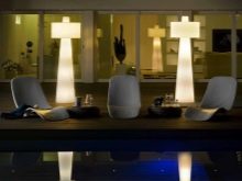 Für die Liebhaber von etwas Außergewöhnlichem können Sie Stehlampen raten, die vage an Stehlampen erinnern. Dies können Säulen mit raumhohen Blasen sein. Sie sind aus Glas oder transparentem haltbarem Kunststoff und sind in verschiedenen Farben hervorgehoben. Sie sehen in der Dunkelheit des Raumes sehr originell aus. Sie werden im Inneren von Bars, Restaurants und manchmal in Büros verwendet.